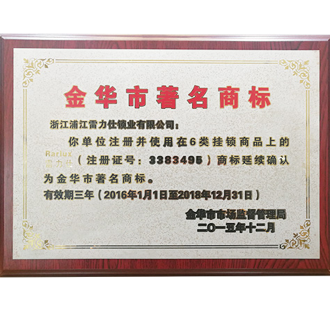 浦江雷力仕鎖業(yè)有限公司始建于1995年,是一家專業(yè)的鎖具生產商,位于全國最大的掛鎖制造中心-浦江。 公司具有強大的鎖具設計、研發(fā)、改良和制造能力,并擁有先進的設備和雄厚的技術力量、以及一支訓練有素的專業(yè)團隊。 公司專業(yè)生產50多種系列的100余種中高檔銅、鐵掛鎖, SUS304 不銹鋼掛鎖,于2015年通過了ISO9001:2015質量管理體系認證。現(xiàn)有注冊和授權商標:RARLUX、JEWEL-FLOWER、TRI-CYCLE。產品暢銷非洲、中東、歐洲、墨西哥、南美等地區(qū)。依靠值得信賴的品質和完善的服務,深受海內外客戶的青睞。 “造就最卓越的品質、提供最優(yōu)質的服務”是標準、是承諾、更是我們銳意進取的動力。